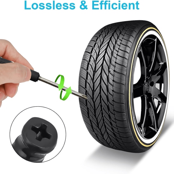 Simplemente enrosca el tapón de goma para reducir temporalmente la fuga de aire de pequeños pinchazos en la banda de rodadura y continuar conduciendo con seguridad hasta el centro de servicio más cercano.