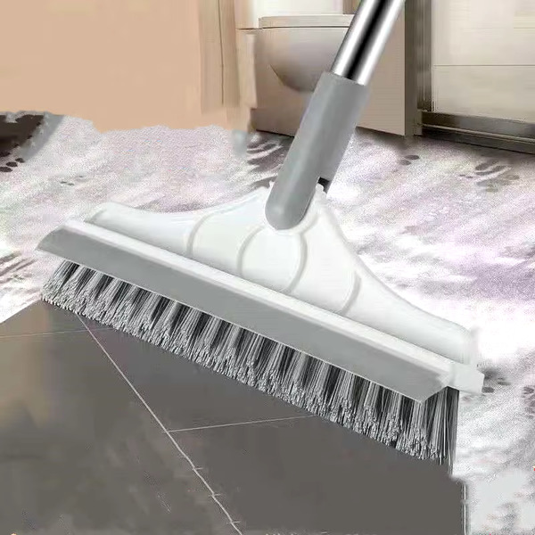 El diseño en forma de V limpia las juntas, los rodapiés y las esquinas estrechas que las escobas estándar pasan por alto. El lado plano sirve para las superficies del baño, ventanas y suelos despejados: todo con una sola herramienta.