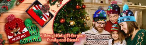 XBEANIE cuenta con un diseño de un ciervo de Navidad y muñecos de nieve y con luces LED, que satisfacen las necesidades de vacaciones y la moda hermosa