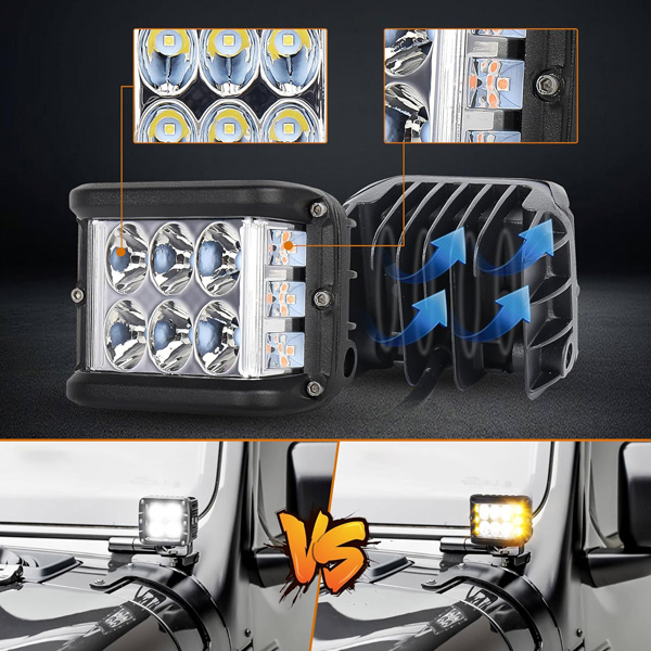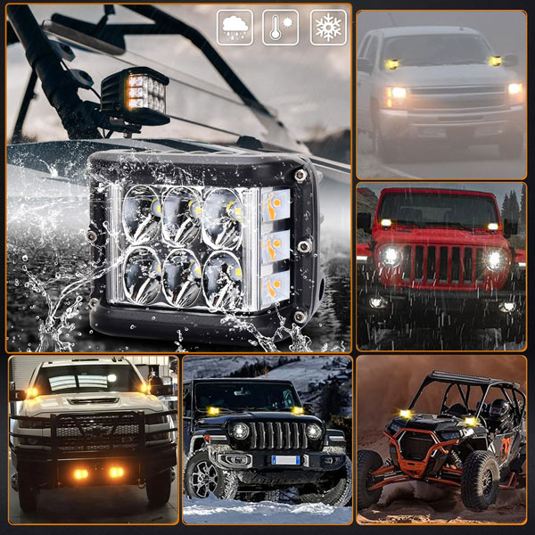 Conducir de noche o en condiciones de niebla puede ser un desafío. Con una potente salida LED de 6W y una temperatura de color de 6000K + 3000K, estas luces ofrecen un brillo excepcional y mejoran la visibilidad, aumentando tu confianza y seguridad en la carretera.