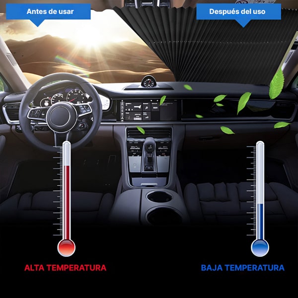 Nuestro producto bloquea eficazmente los dañinos rayos UV, evitando el sobrecalentamiento y el deterioro de tu auto. Ayuda a mantener un interior más fresco y reduce significativamente el daño en los asientos y el tablero.