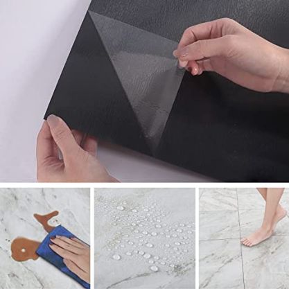 Estos adhesivos autoadhesivos para suelos son una solución económica para la renovación del hogar. Son una excelente alternativa a las caras baldosas u otros materiales para suelos. Tú mismo puedes cortar fácilmente los adhesivos para adaptarlos a tu espacio, lo que los convierte en una opción personalizable.