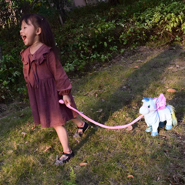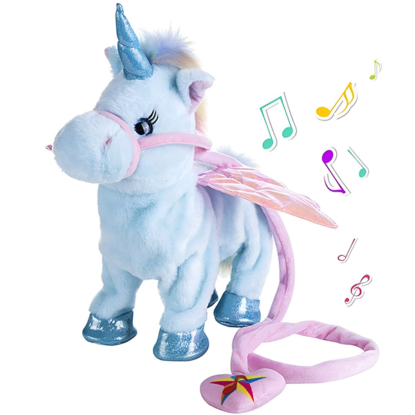 Sustituye los juguetes normales de tus hijos por este divertido unicornio que anda, canta y emite adorables sonidos con un solo toque. A los niños les encantará cambiar entre dos canciones, apretar su correa y acurrucarse con su pelaje de algodón ultrasuave. Disfruta de las sonrisas de felicidad de tus hijos cuando jueguen con su nuevo mejor amigo.