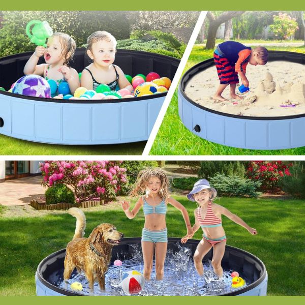 Esta piscina no es sólo para las mascotas, si no que también es una gran manera para que los niños disfruten de un poco de diversión en el agua. Su fondo antideslizante y su construcción duradera la convierten en una zona de juegos segura para los niños. Llénala de agua, arena o incluso pelotas de plástico para un sinfín de opciones de entretenimiento. Es perfecta para reuniones familiares y juegos de verano.