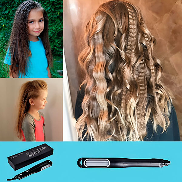 ✔ Rizado automático – solo inserta una sección de cabello, presiona el botón y deja que el dispositivo haga el trabajo.