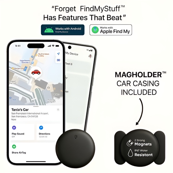 Rastrea tus coches, bicicletas, bolsos, dispositivos electrónicos, niños, mascotas y más. Con la función de Alerta de Separación, recibirás notificaciones cada vez que te alejes de tu coche, asegurando que tus pertenencias valiosas nunca se queden atrás.