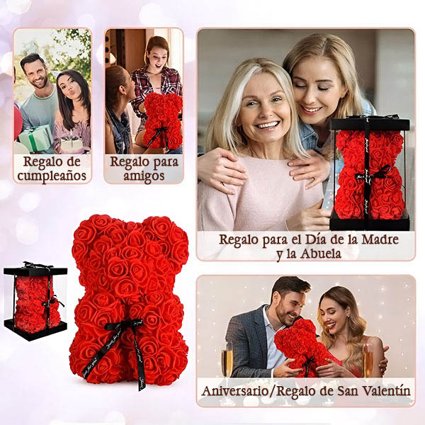 🎁 Sorpréndela con un oso de peluche romántico hecho de rosas que no se marchitan.
