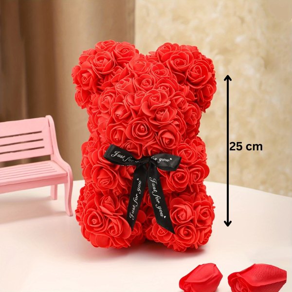 Este oso de peluche es un regalo especial, hecho a mano, que combina la suave elegancia de las rosas con el encanto de un oso de peluche. Cuando presentes esta creación única, seguro que dejará a todos asombrados, convirtiéndose en una sorpresa inolvidable.