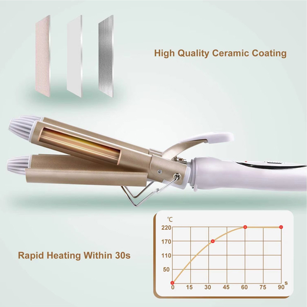 El diseño ergonómico y la tecnología de calentamiento rápido aseguran que puedas rizar tu cabello en solo unos minutos, siendo perfecto para mañanas ocupadas y ocasiones especiales.