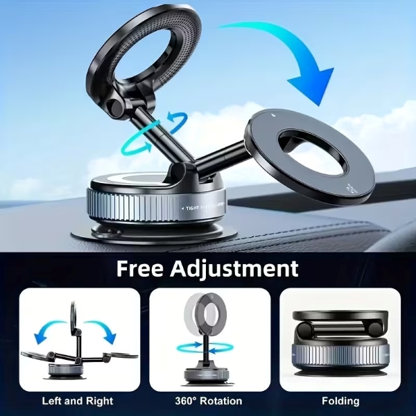 Con movimiento de triple eje y rotación de 360°, este soporte te permite colocar el teléfono en cualquier ángulo, ya sea vertical u horizontal, garantizando estabilidad incluso durante la conducción.