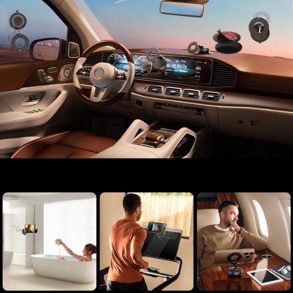 El soporte para teléfono MAGHOLDZ utiliza una potente sujeción al vacío que se intensifica con las vibraciones, manteniendo tu teléfono firmemente sujeto sobre superficies lisas sin dejar marcas en el vidrio, el salpicadero o el escritorio.