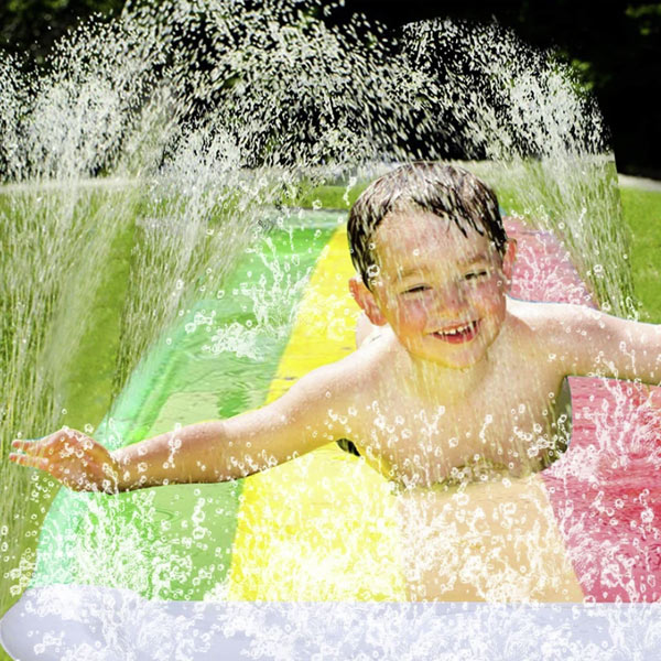 El tobogán acuático con sistema de aspersores es un excelente producto de entretenimiento al aire libre.
